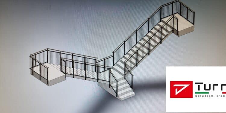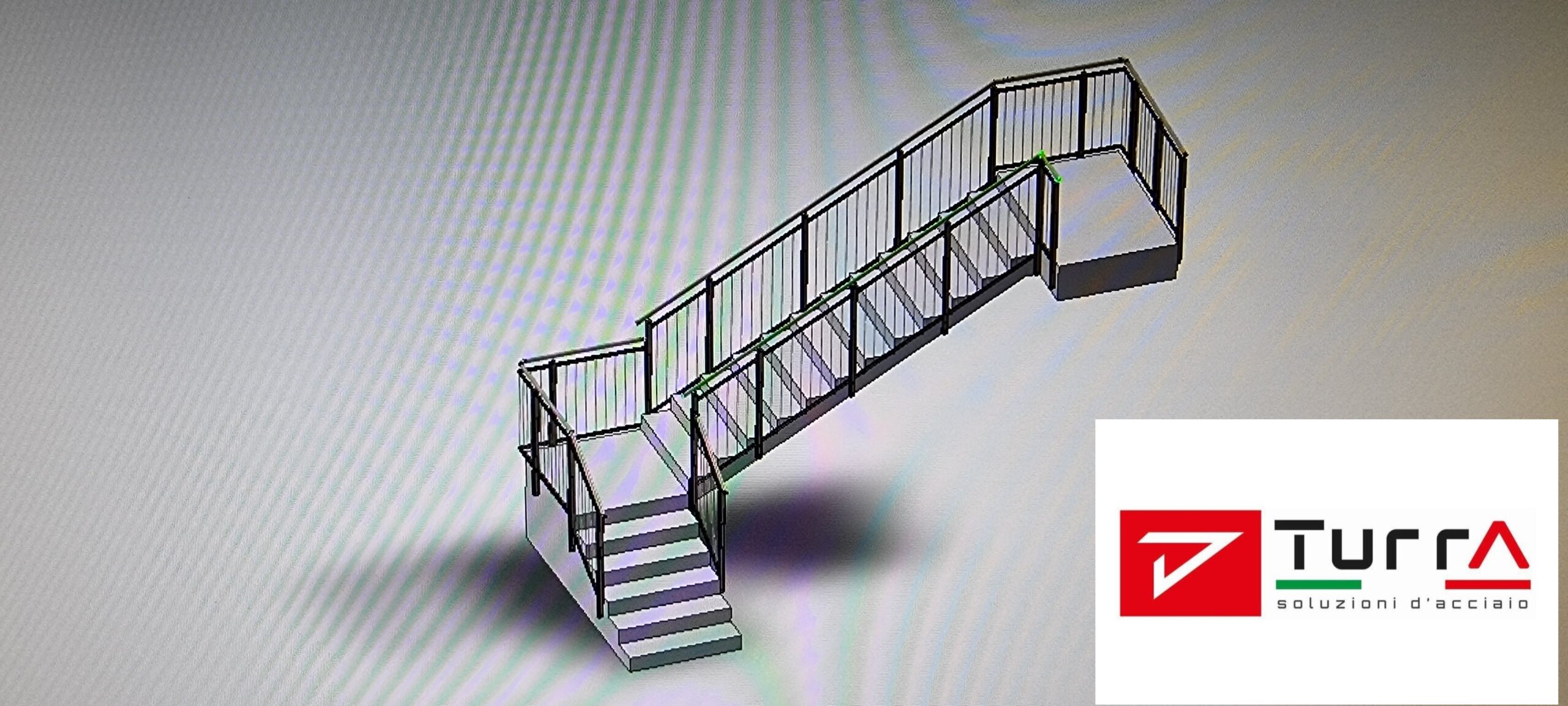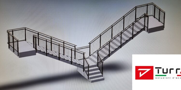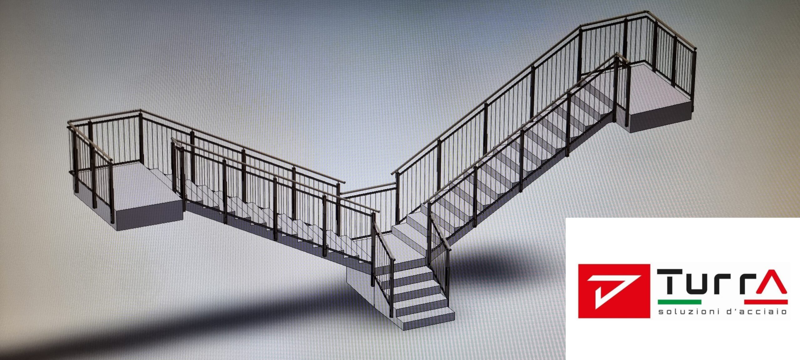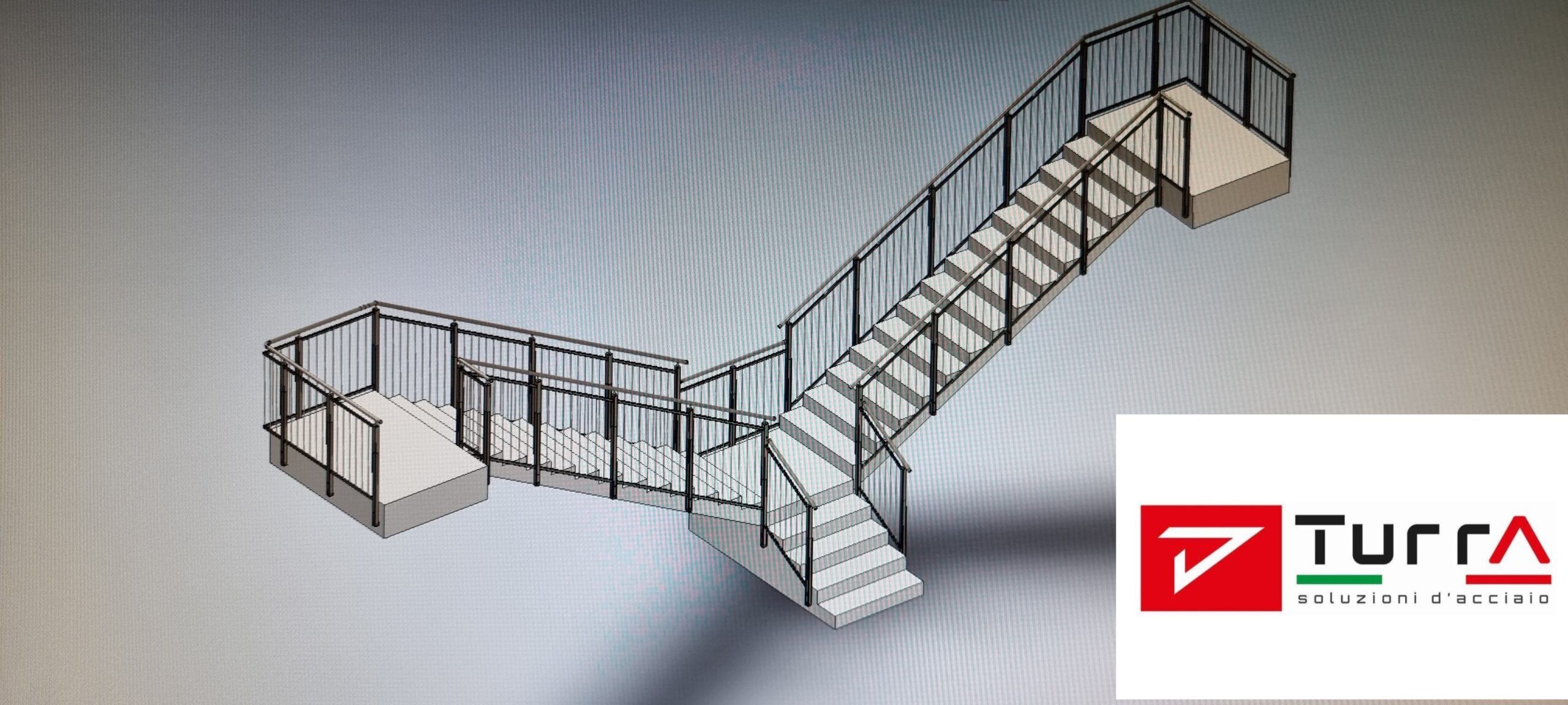 Le immagini di studio mostrano l’impostazione generale del manufatto prima della posa, mentre le foto di cantiere e di lavoro ultimato documentano il passaggio dall’idea iniziale al risultato installato. In questo caso il nostro intervento ha riguardato una fornitura su misura pensata per adattarsi a una scala esterna con geometria precisa e con più tratti collegati tra loro, mantenendo regolarità negli allineamenti e nelle altezze percepite lungo tutto il percorso.